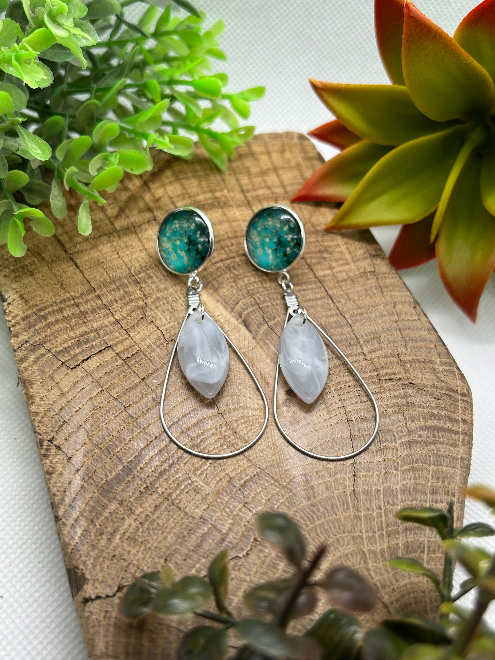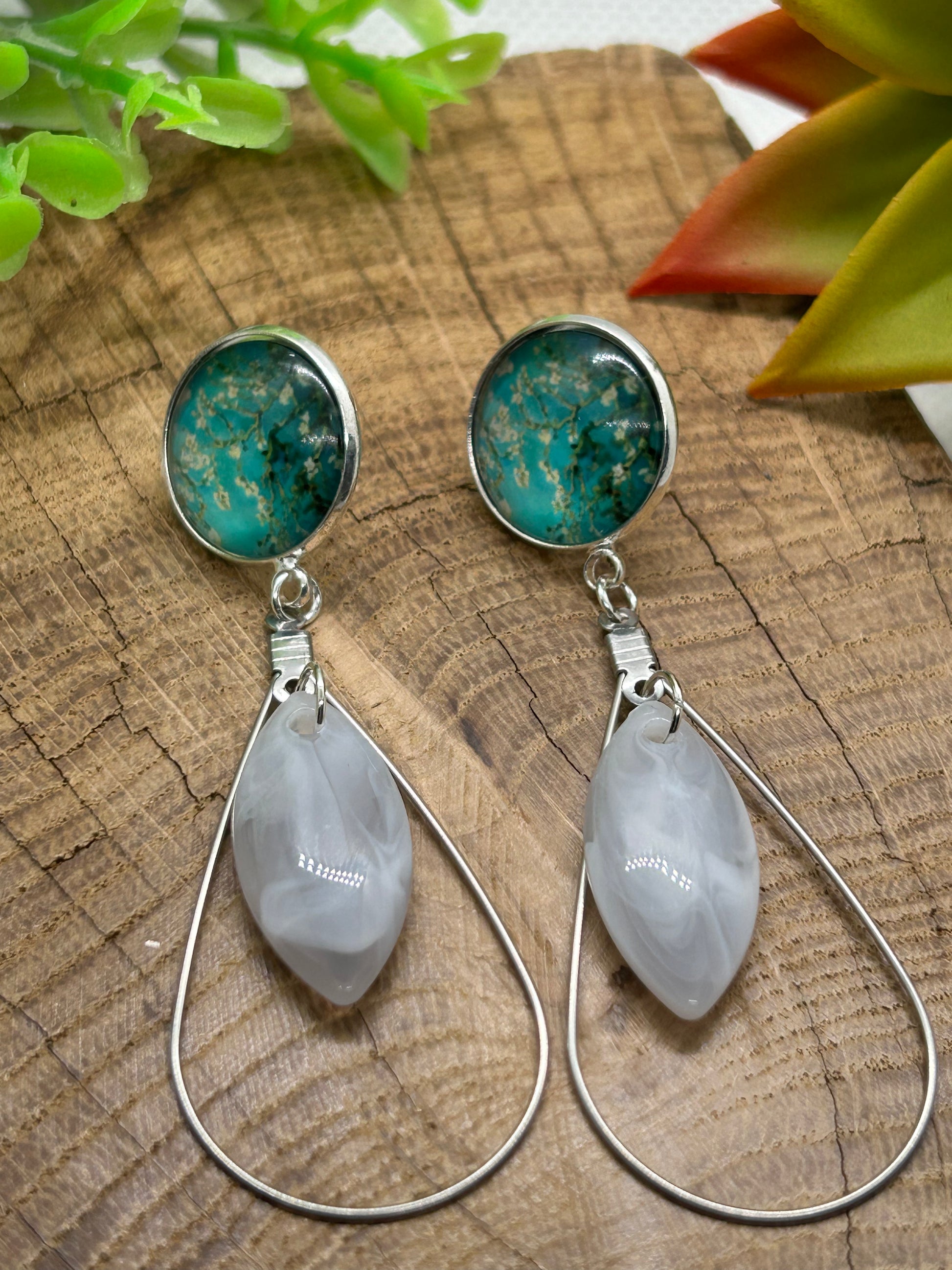 Un cabochon d’une toile de Van Gogh et de jolies breloques pour une paire de boucles d’oreilles originale et unique !