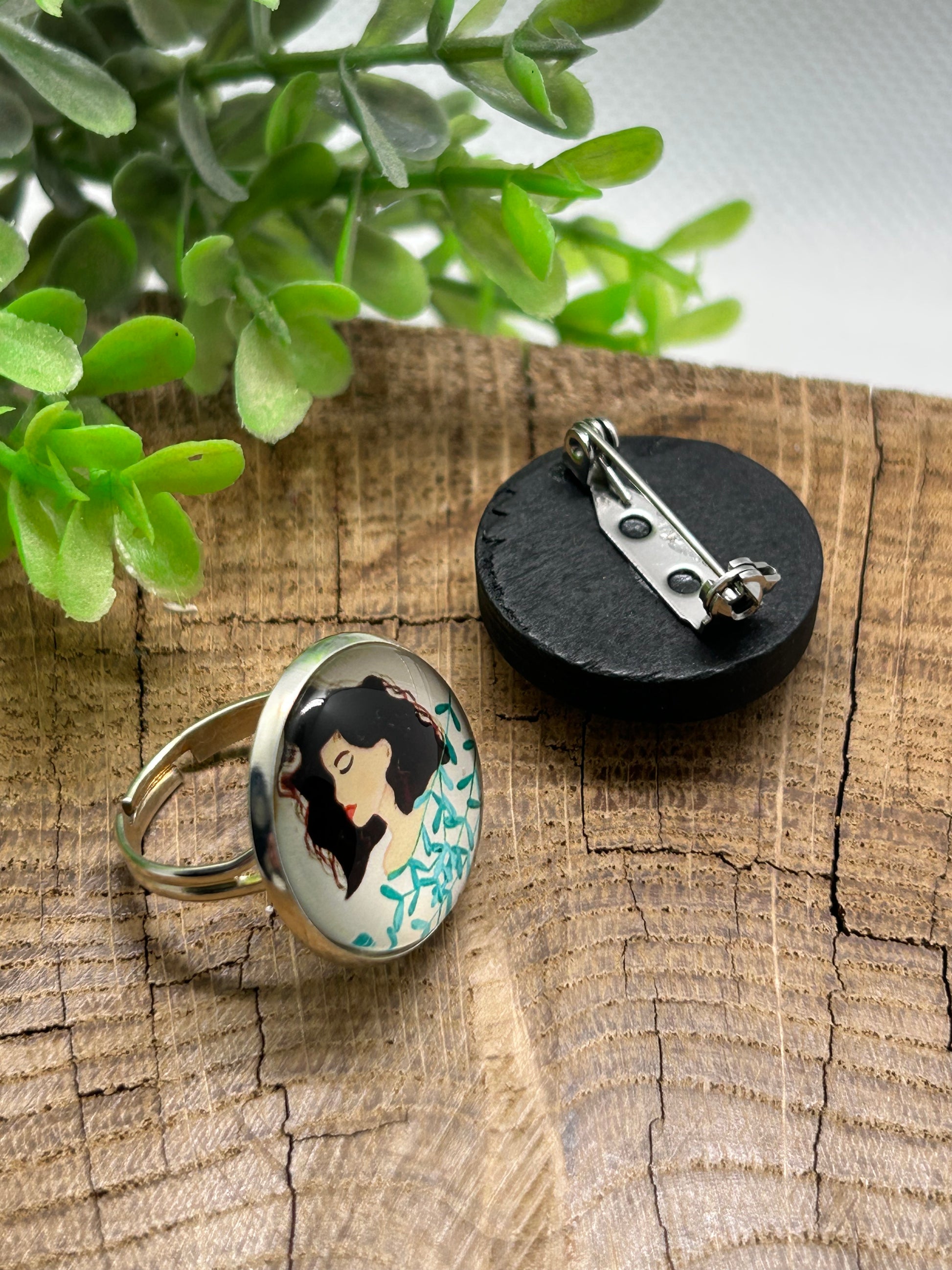 Un duo broche et bague ajustable