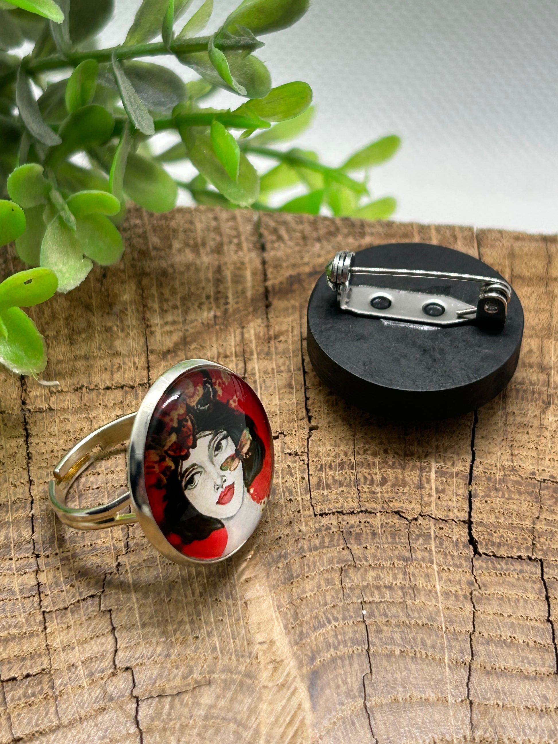 Un duo broche et bague ajustable