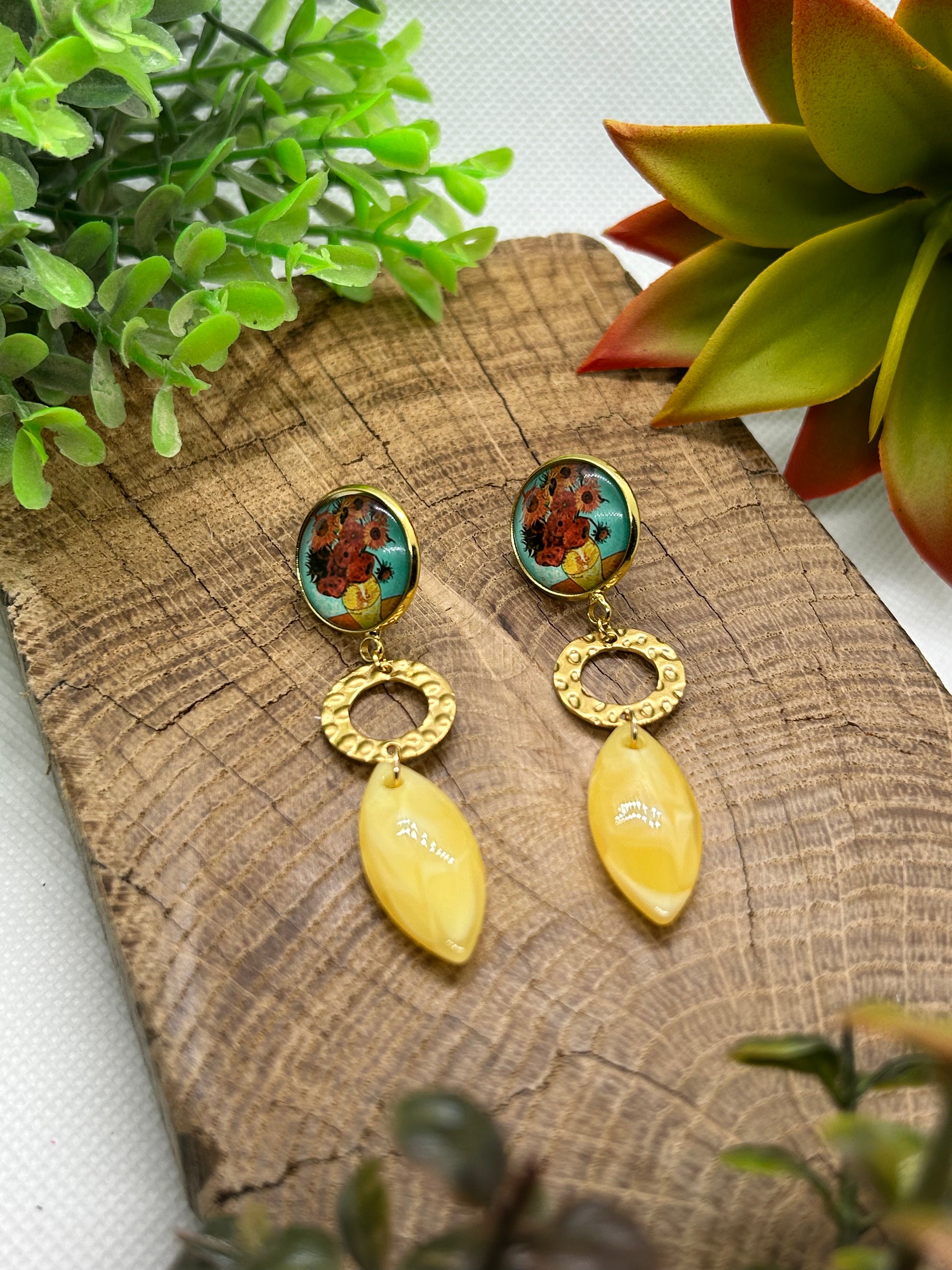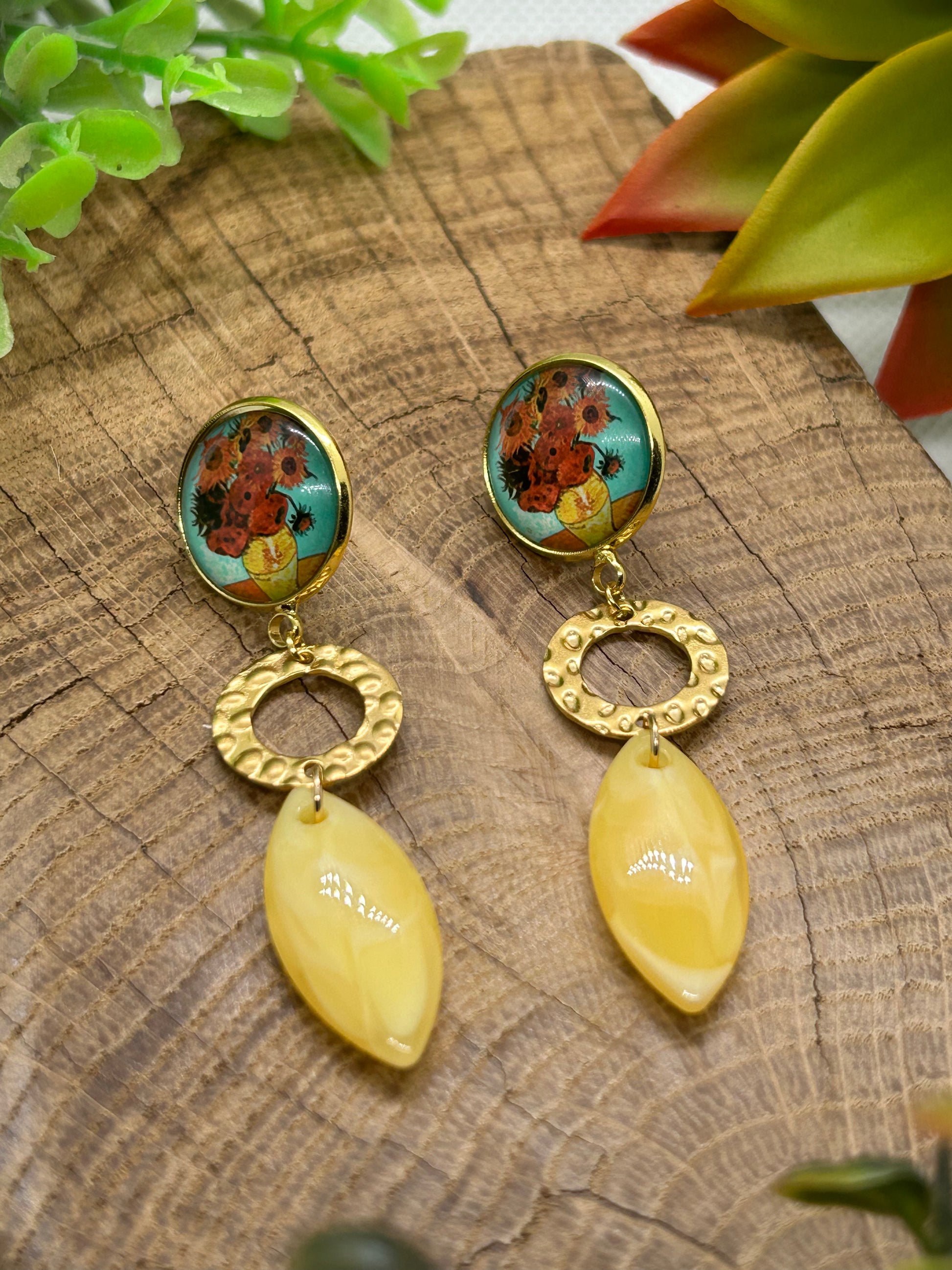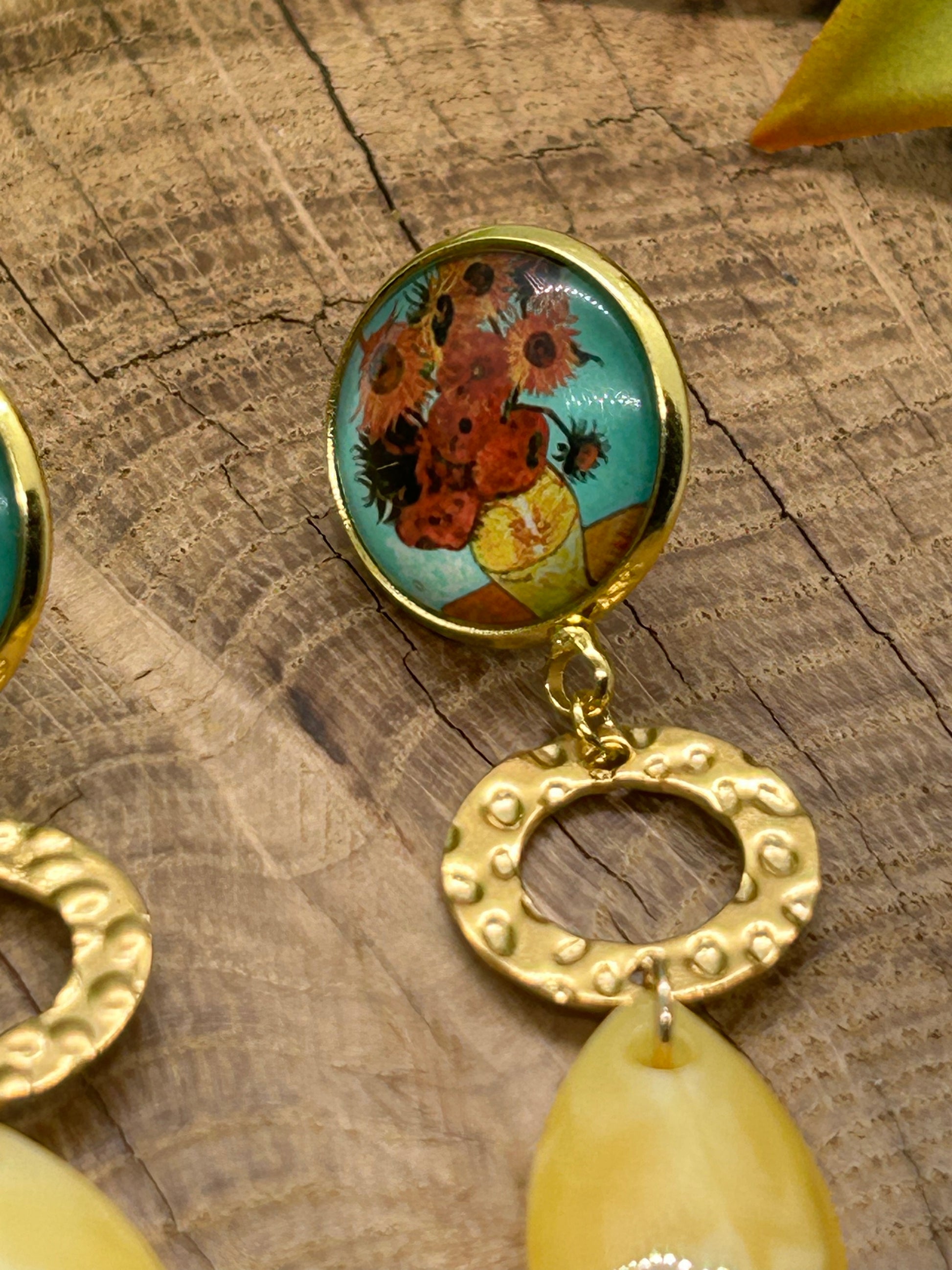 Un cabochon d’une toile de Van Gogh et de jolies breloques pour une paire de boucles d’oreilles originale et unique !
