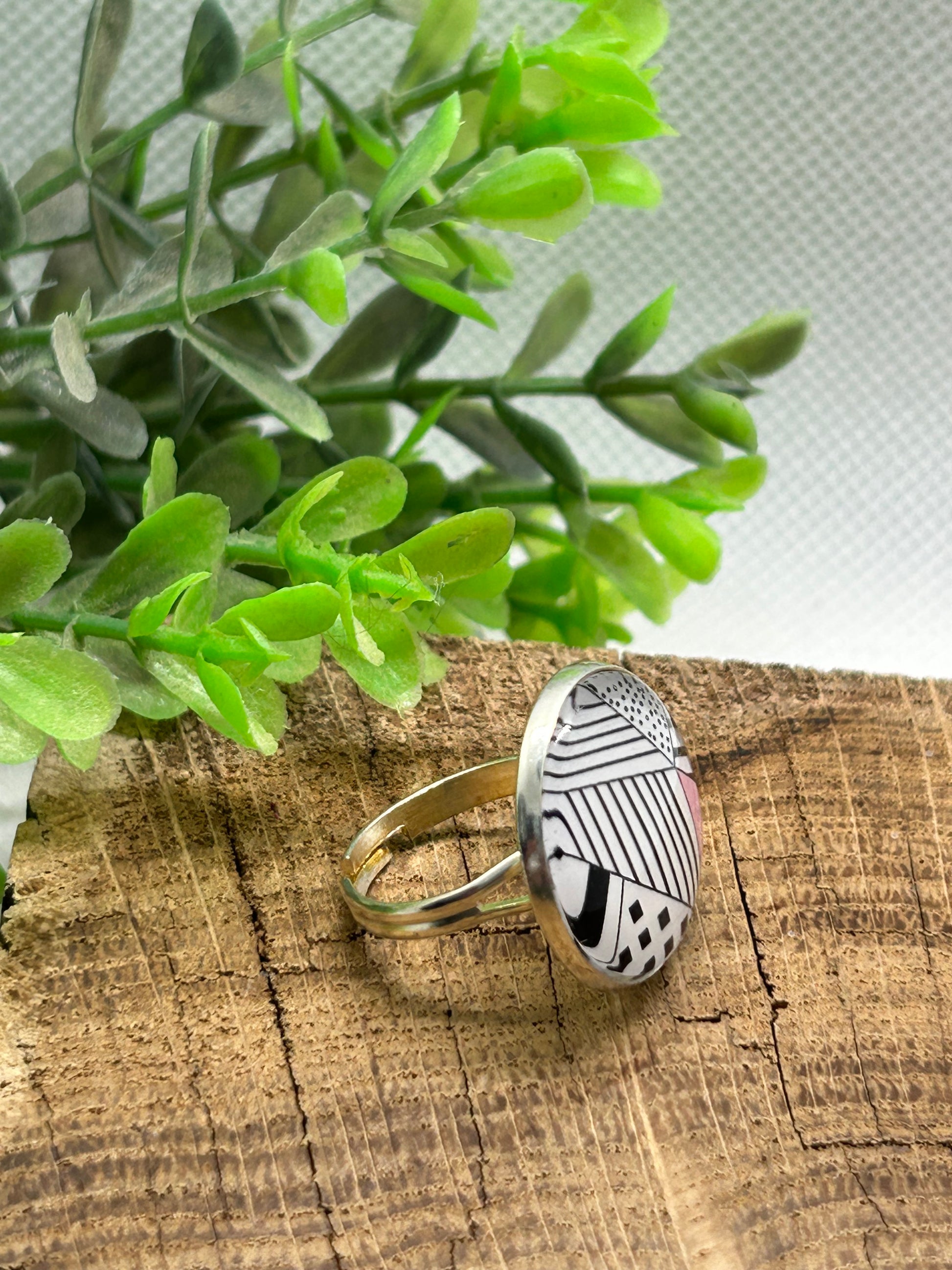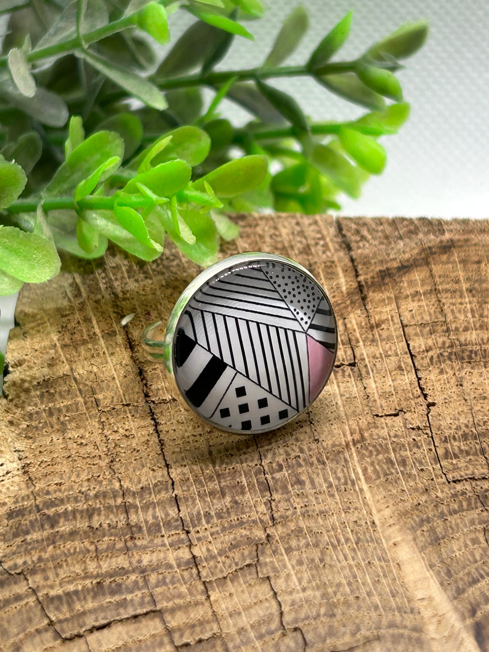 Une bague cabochon, couleur argentée et ajustable